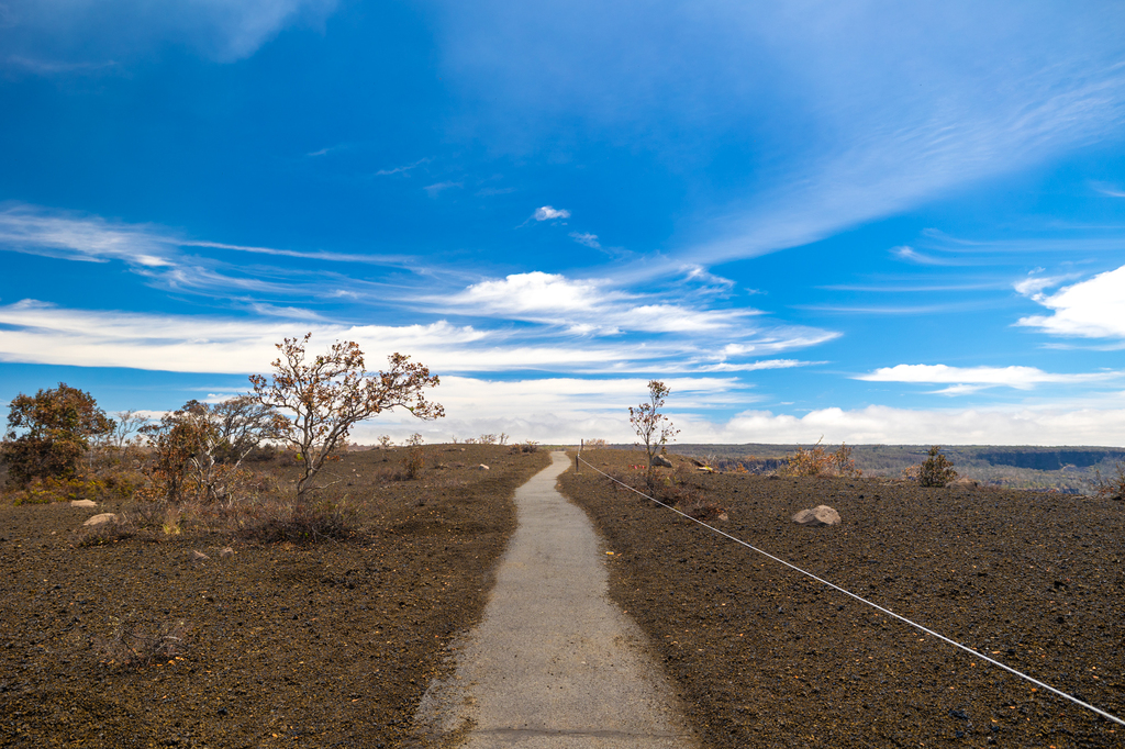 The Puʻupuaʻi Overlook via Devastation trail is a short, 1.0 mile paved walk that highlights the dramatic aftermath of the 1959 Kilauea Iki eruption. Interpretive signs along the trail show striking before-and-after photos of the valley, revealing how quickly and completely the landscape was transformed and filled with a lake of lava.