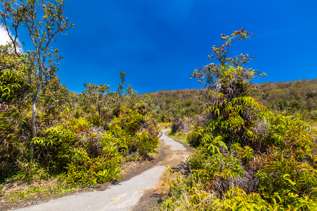 Despite the volcanic landscape, this trail is surprisingly lush, with plenty of ferns and trees, though there are still a few exposed sections with little shade. It can be humid along the path!
