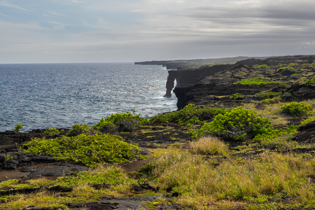 The Chain of Craters Road ends at the coast, where you can take a short walk to view the Hōlei Sea Arch. This 90-foot-tall arch is carved from lava rock and framed by strikingly blue Pacific waters. While this was my least favorite stop along the drive itself, the ocean views alone make it worth the visit.