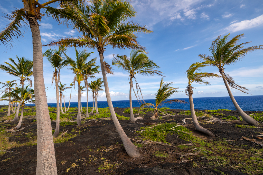 Holei Sea Arch and palm tree grove
